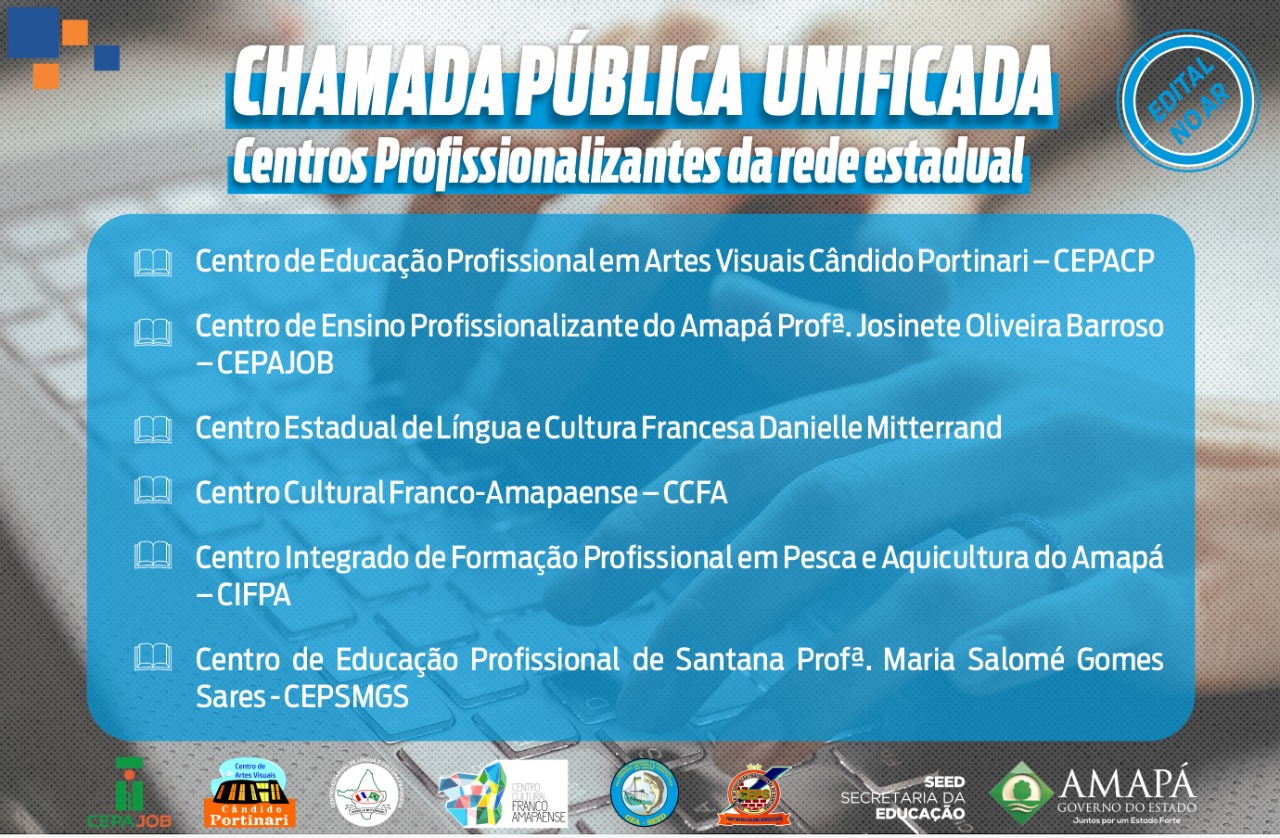Há vagas para os centros Danielle Mitterrand, Franco Amapaense, Cândido Portinari, Cepajob, Pesca e Aquicultura e Maria Salomé