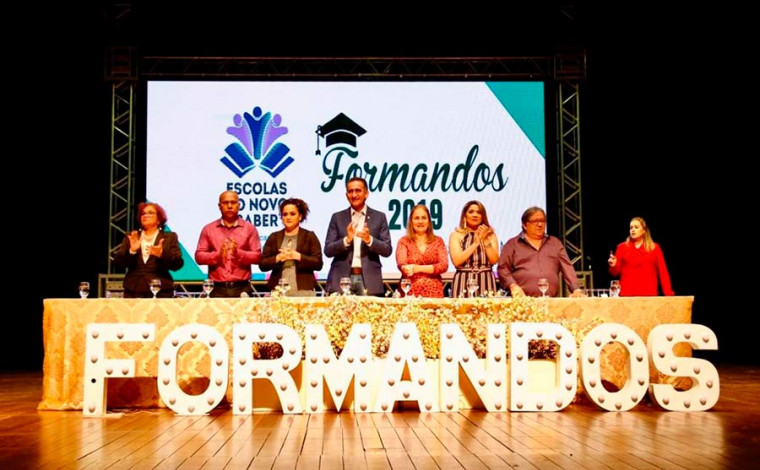 Em 2020, serão 23 escolas em 8 municípios com o modelo de ensino. Anúncio aconteceu em formatura de alunos das primeiras turmas das Escolas do Novo Saber.