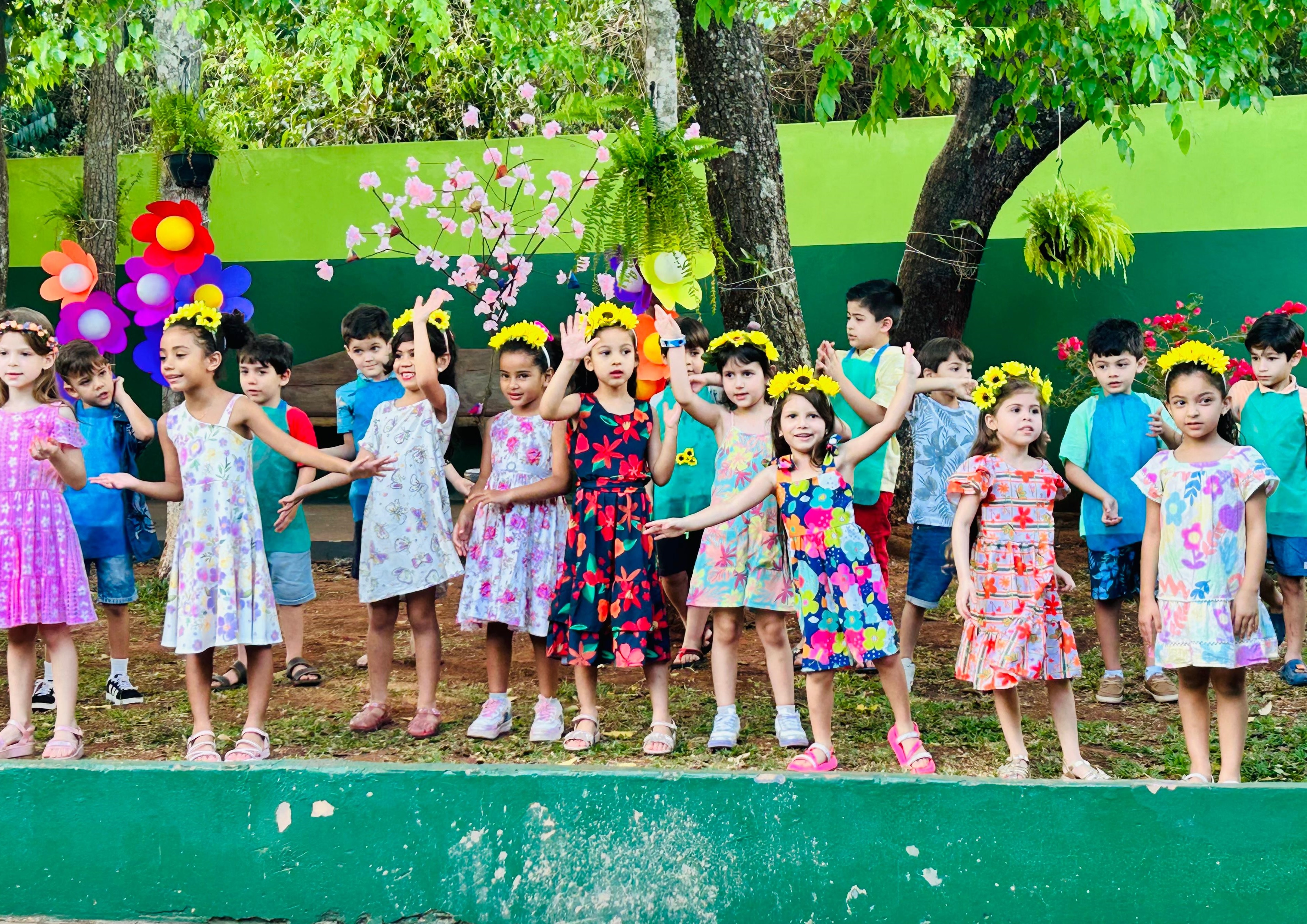 Os ambientes foram decorados com móbiles, pinturas e enfeites criados pelas próprias crianças, utilizando elementos da natureza.