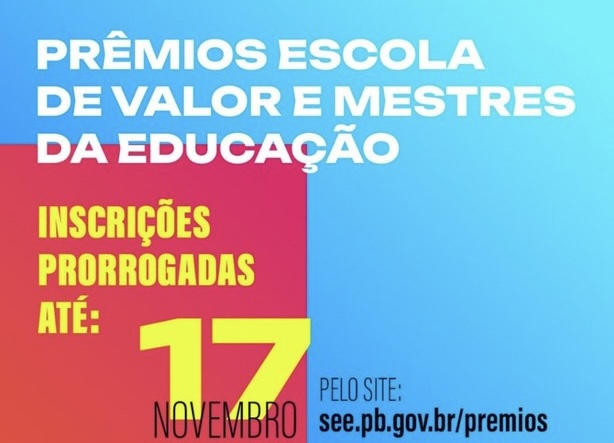 Governo do Estado prorroga inscrições dos editais Escola de Valor e Mestres da Educação para o dia 17