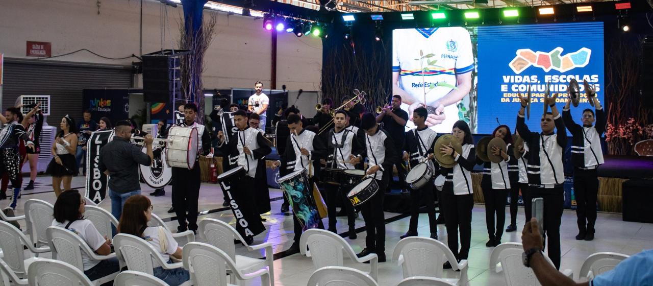 A entrega de 20 instrumentos de percussão foi realizada, nesta quarta-feira (28), na unidade de ensino