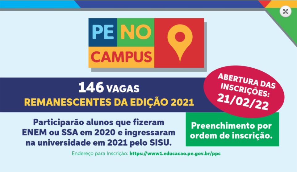 Processo seletivo é destinado à concessão de 146 bolsas remanescentes do programa no ano de 2021