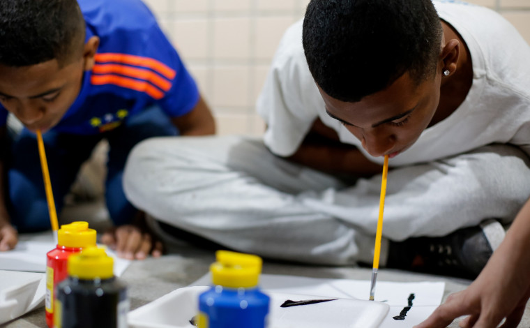 Futsal com olhos vendados, voleibol sentado e pintura com a boca foram algumas atividades desenvolvidas ao longo do dia