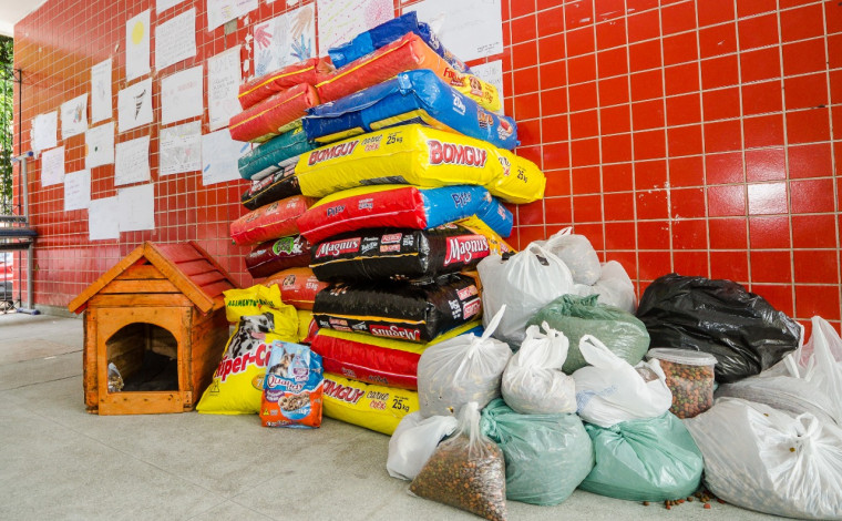 A solenidade de entrega reuniu representantes de diferentes abrigos de cães e gatos no pátio da unidade de ensino