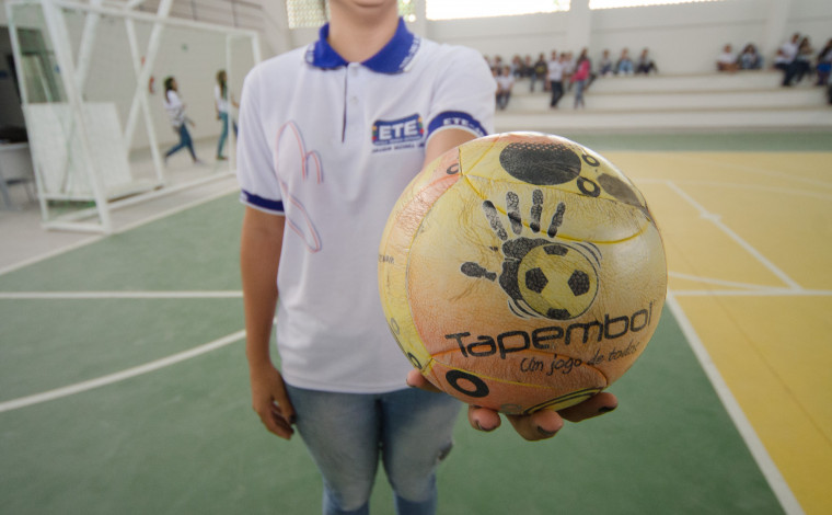 Tapembol é um jogo bastante inclusivo, jogado numa quadra, em que a bola é conduzida por tapas