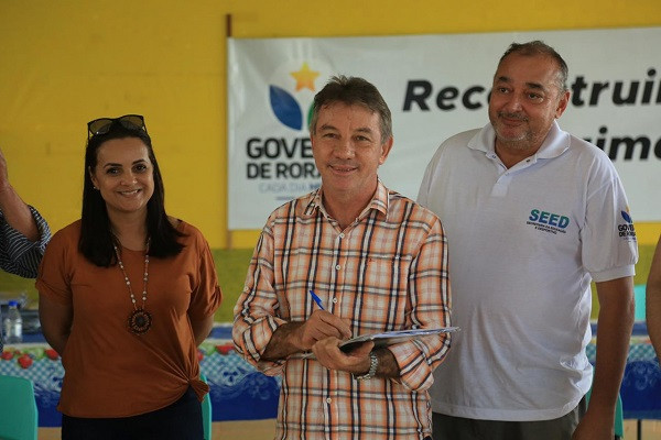 O Governador Antônio Denarium fez o anúncio ao lado da primeira Dama Simone Denarium e do adjunto da Educação, Semaias Alexandre