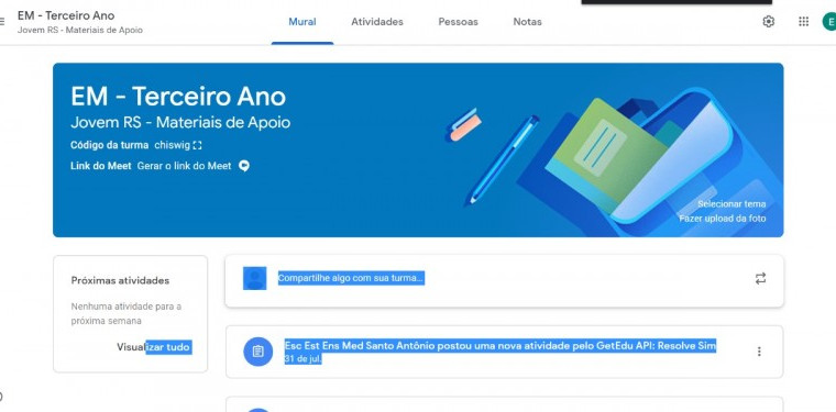 Nova ferramenta está disponível no Google Sala de Aula das Aulas Remotas