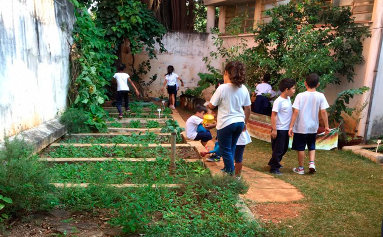 Salsinha, manjericão, cebolinha e hortelã são cultivadas em escola participante do PEI na capital paulista