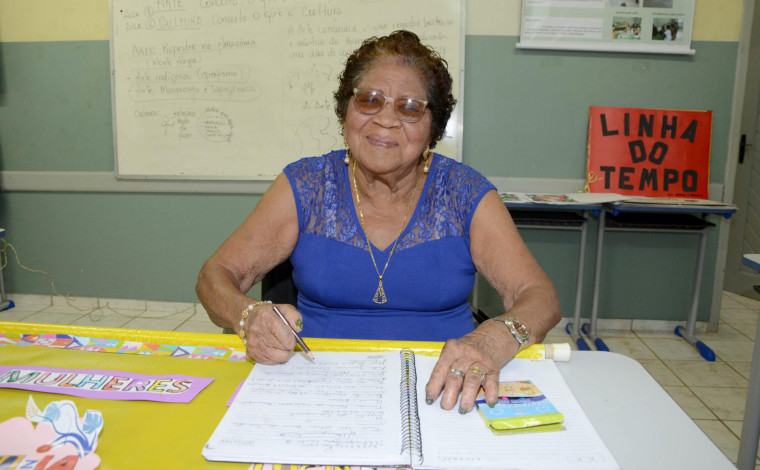 Maria da Silva Trindade tem 91anos de idade e muito gosto em aprender. Tanto que ela frequenta as aulas da 2ª etapa (Ensino Fundamental I e II) da Educação para Jovens e Adultos (EJA) na Unidade Especial Abrigo João Paulo II, em Marituba. As aulas são viabilizadas pelo Programa Classe Hospitalar da Secretaria de Estado de Educação (Seduc) nesse polo de atendimento da Secretaria de Estado de Saúde Pública (Sespa). Dona Trindade é uma mulher acostumada a vencer desafios e conta com apoio de outras mulheres para continuar seu aprendizado na vida.