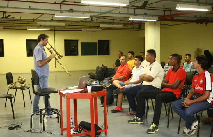 Iniciado na terça-feira (7), o curso será realizado em 12 encontros, até dezembro deste ano. Ao todo, foram inscritos 180 alunos, na faixa etária de 9 a 66 anos. Entre os inscritos, o estudante Guilberthe Souza Luna, 20 anos, busca o aperfeiçoamento. “Faço parte da fanfarra do Colégio Estadual Dinah Gonçalves e fiquei interessado em participar para melhorar como músico. Não me considero músico profissional porque ainda não tive acesso a um curso que me passe o conhecimento técnico. Esse curso que estou iniciando vai ser importante para mim e vai me dar a opção de seguir na música”, ressalta.